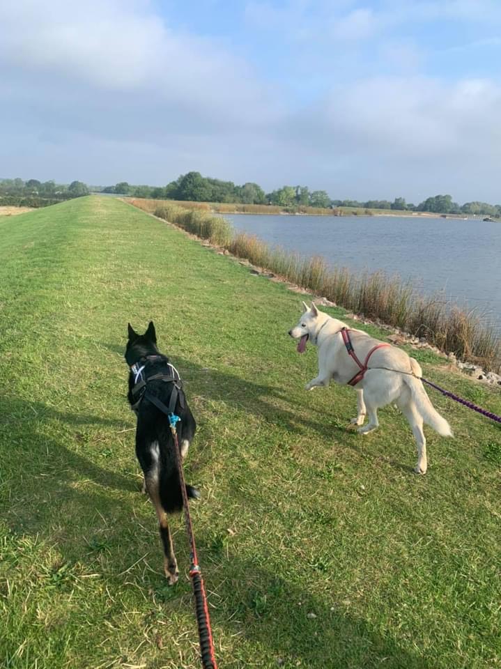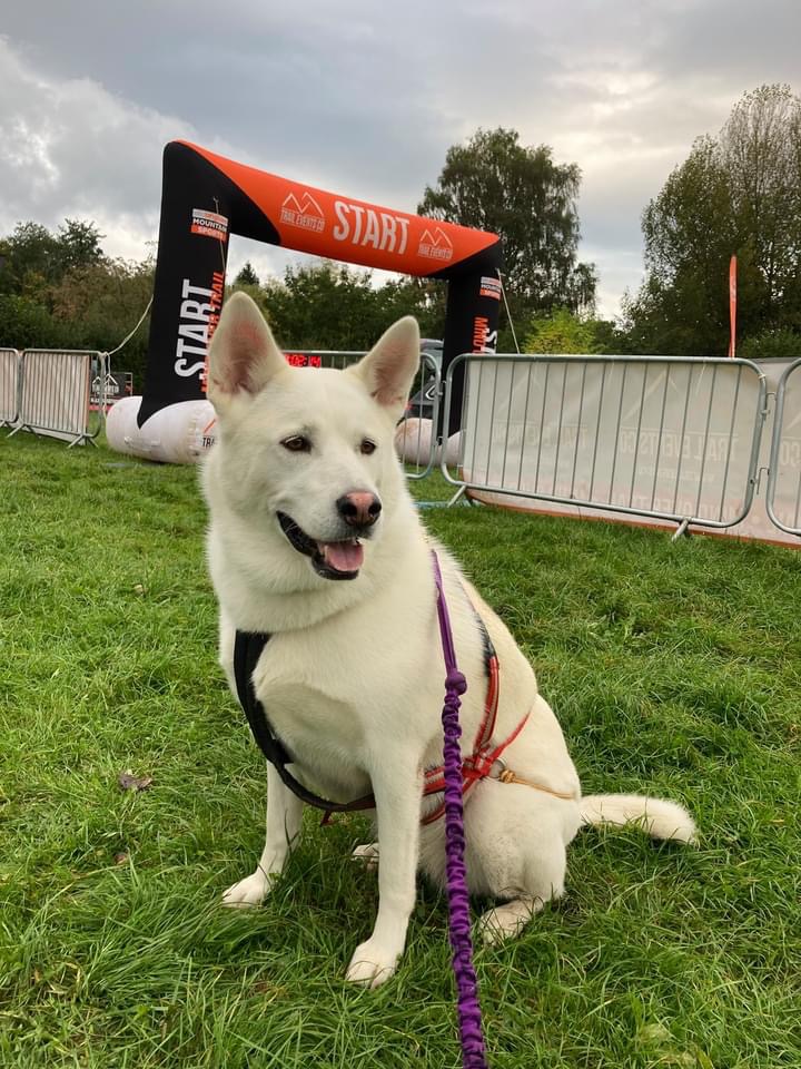 I run with Lyca, she’s a Husky Cross that we rehomed at 5 months. She’s now just turned 2, and we’ve done a couple of events together now. We run 3 – 4 times per week, but we’re building to much longer distances with the plan of her joining me in mountain marathons and ultra distances. It’s a fantastic bonding experience, and adds a whole new experience to trail running. Navigating stiles, steep slopes and fields of sheep becomes much more of a challenge, especially with a husky! The benefit of running with a dog comes on the flat or uphill sections, however downhill can take more time to control. I am regularly overtaken by non-canicross runners on the downhill as I use all my core and quad strength to stabilise and stop myself being dragged over! Core strength is just as important as running speed with canicross, and my fitness has changed dramatically since I started my canicross journey.